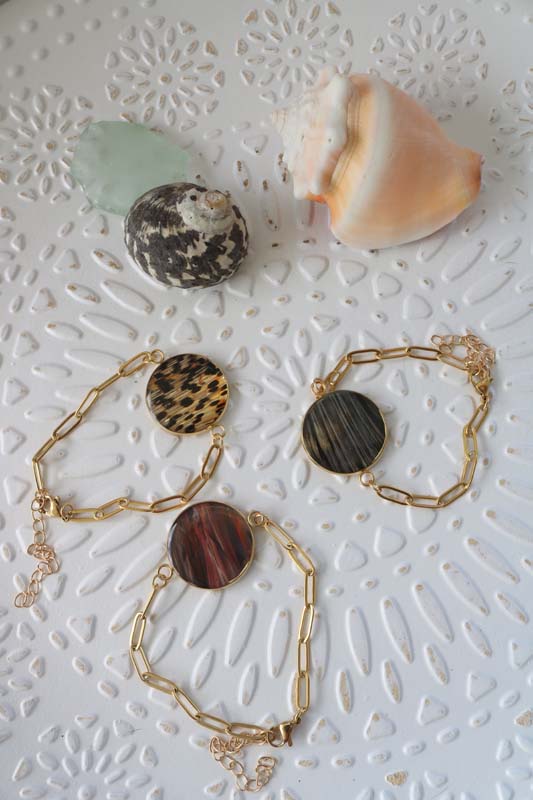 Description: Your choice between gold-plated (25 mm) or stainless steel (20 mm) lionfish pendant around an adjustable paperclip chain. This super trendy bracelet is roughly 7 inches and has a 2.5 inch extender chain.