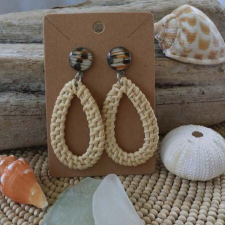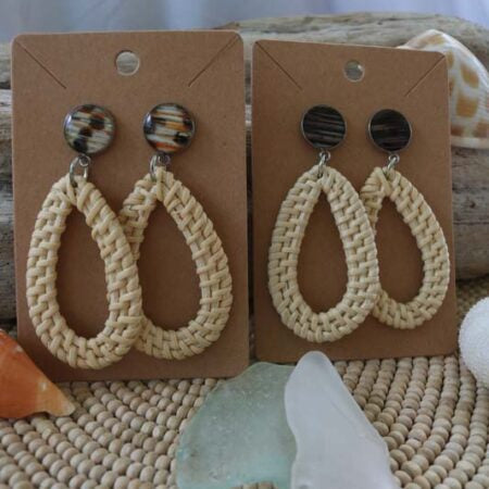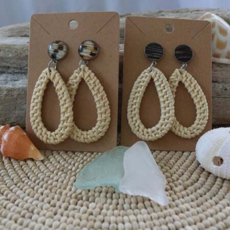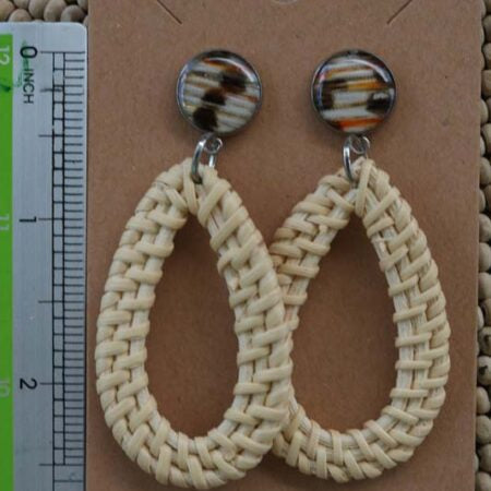 Description: These hand woven rattan earrings are lightweight, neutral, and easy to pair with anything. They’re great for dinner on the beach, or if you’re in the snow and you need to feel like you’re on the beach! *Note: The rattan charms are handwoven using natural wooden straw. No two charms are completely identical.*