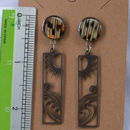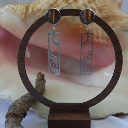Description: The contrast of the circular lionfish charm and the rectangular sun and wave charm make for a very unique earring.