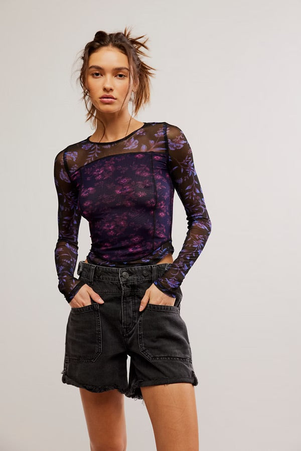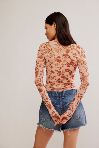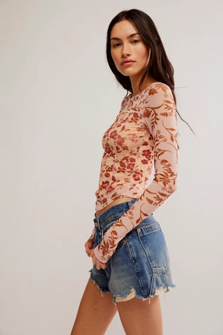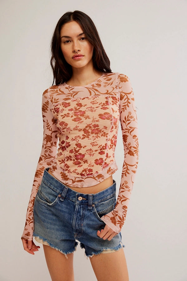 Effortlessly essential with a slight ethereal touch, this timeless top is featured in a fitted, long sleeve silhouette with stunning floral printing throughout, semi-sheer sleeves, and defined seaming for added dimension.