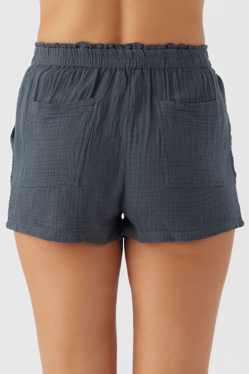 Effortlessly stylish woven pull-on short that features a solid color design, front slash pockets and paperbag waistband detail.