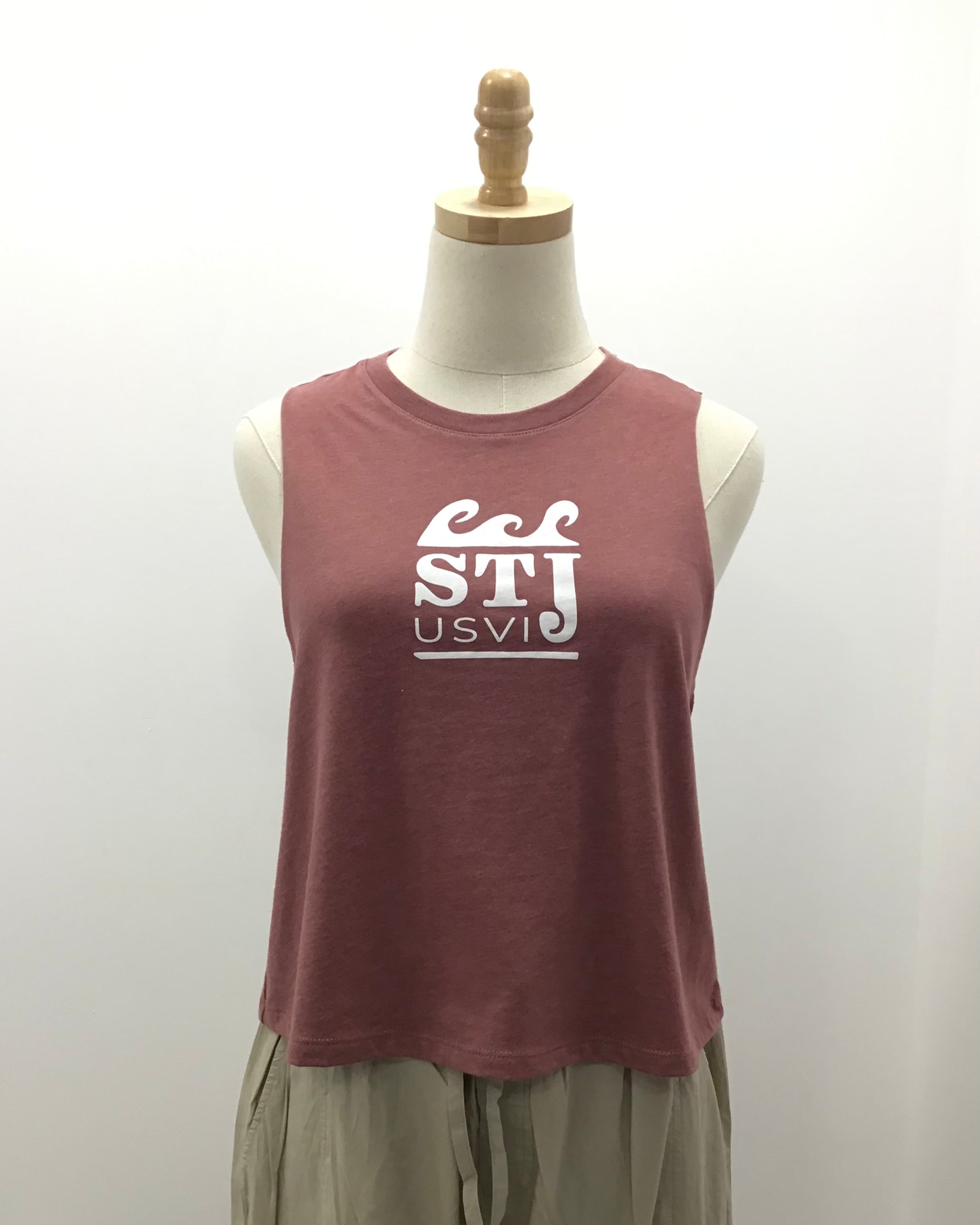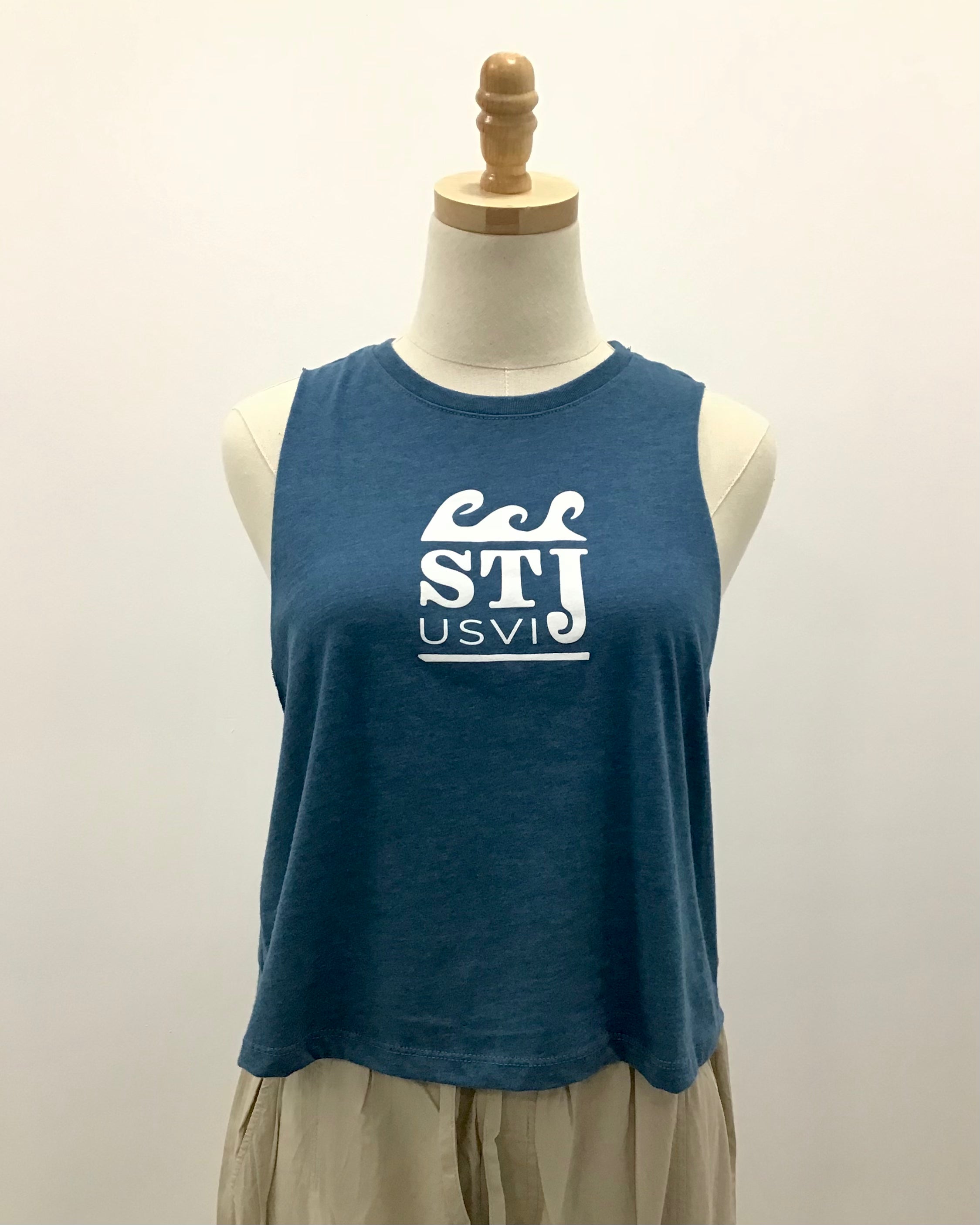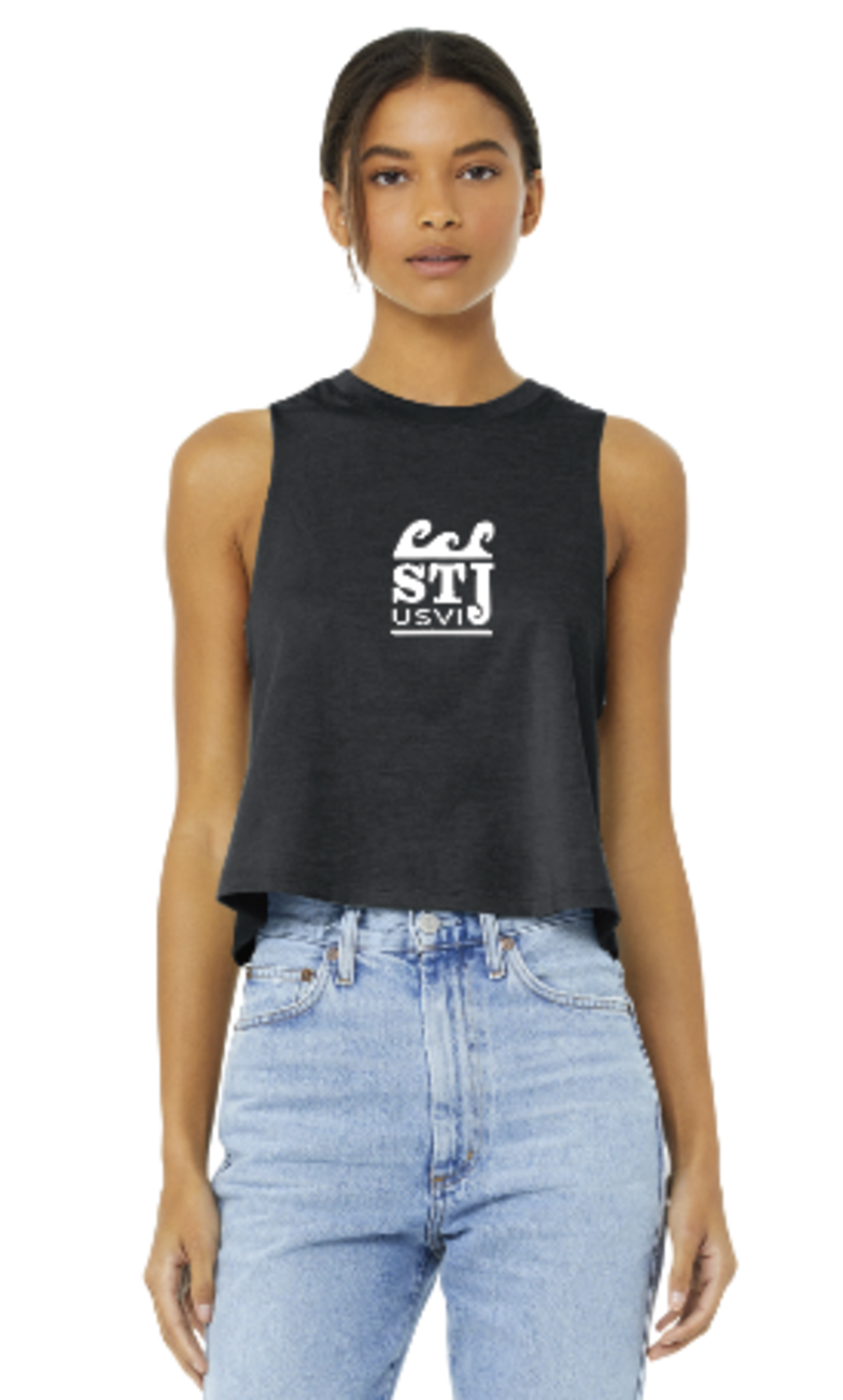The Wave Racerback Cropped Tank is a super soft tanktop with a flattering back, perfect for a hike or just to hang out. Featuring the St. John USVI Wave graphic.
