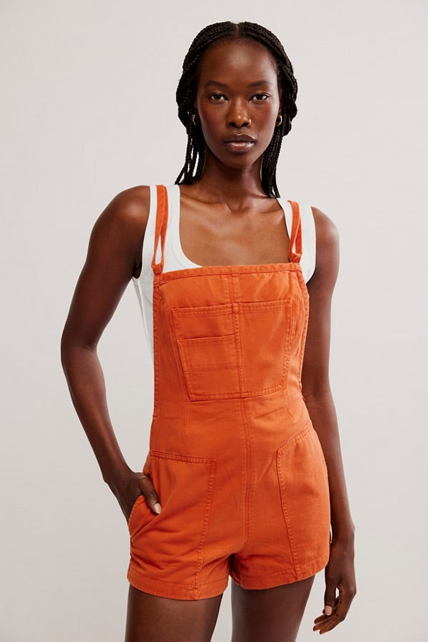Keep it cool on warm, sunny days in these classic shortalls designed in nonstretch denim with an adjustable back tie closure.