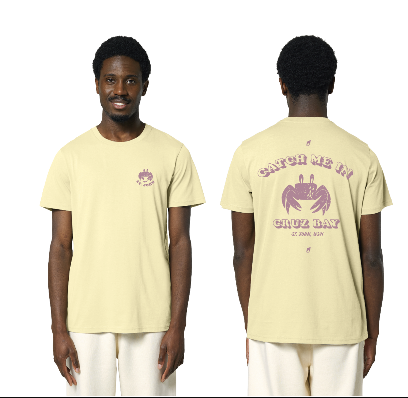 The Catch Me in Cruz Bay T-shirt in Butter Yellow is the perfect souvenir to take home from a visit to St. John. Made from 100% Organic Cotton, the t-shirt is super soft and breathable.